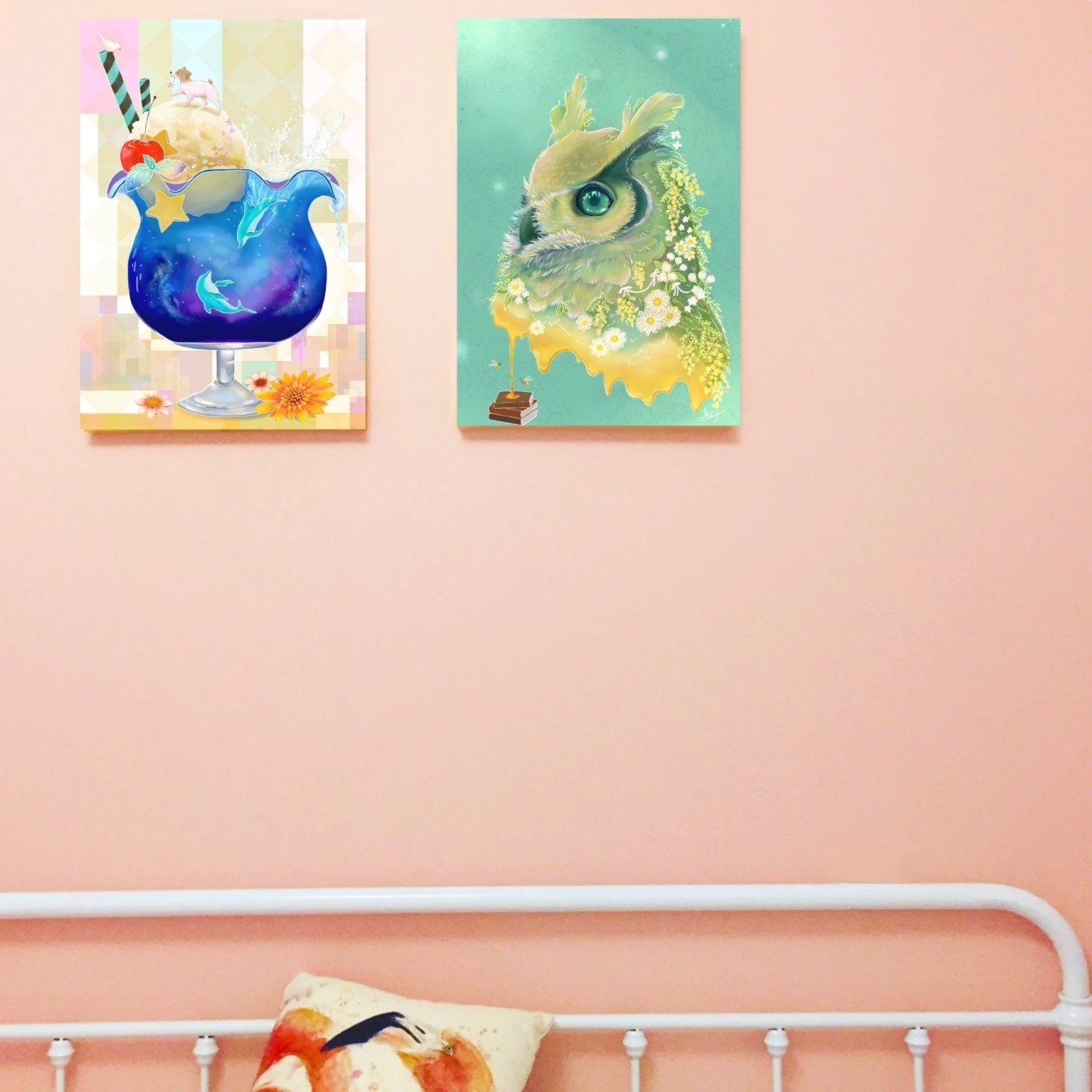 手描きのペン画をデジタル彩色しアートパネルにしました。