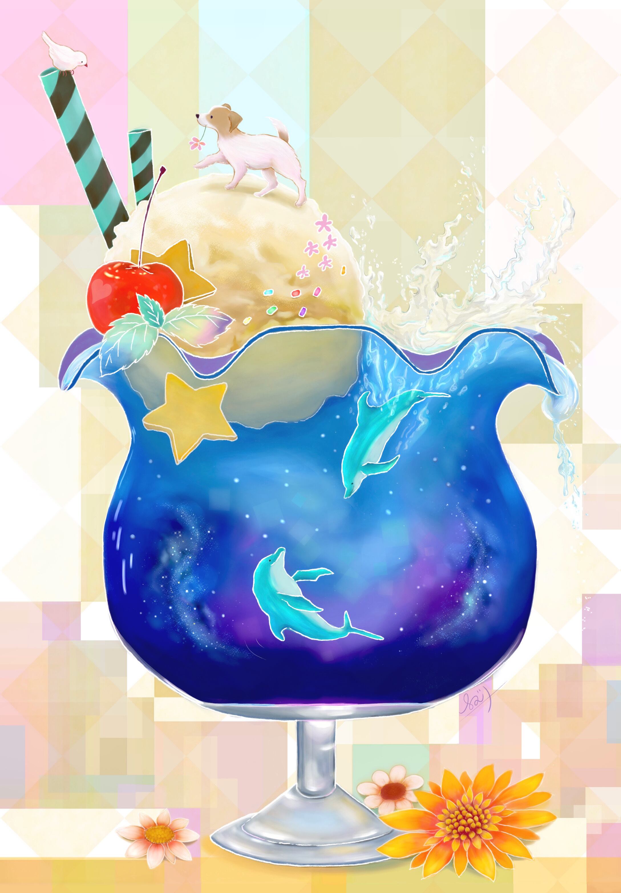 夜空に輝く星たち、泳ぎ遊ぶイルカ、甘く楽しいクリームソーダ、華やかで幻想的なワクワクを詰め込みました✨